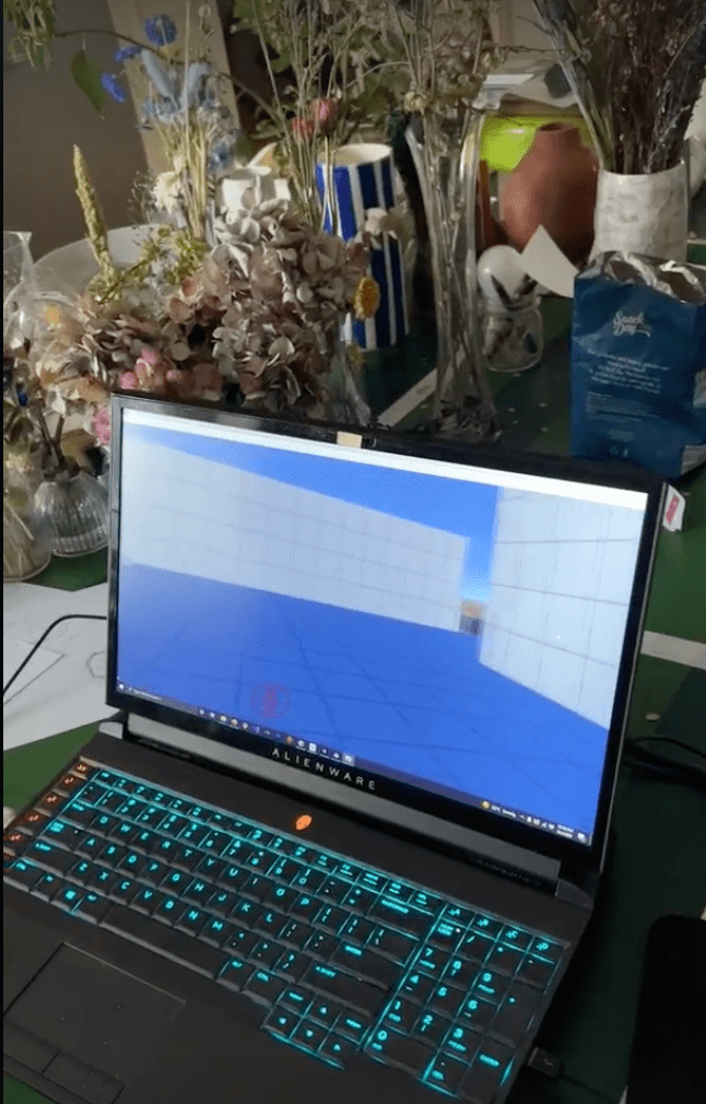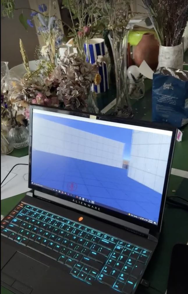 SLIDE 27 First I want to let you know that I have never actually made a film before, so although I know we completely upended the usual workflows for filmmaking, it didn’t actually seem weird to us. Once I had a script, we began to work on what I call a responsive mis-en-scene: this was a responsive environment including architecture, spatial sound, and movement based triggers. To facilitate our collective imaginings, my artistic partner Cyril Tsiboulski, created a quick mock up in VR Chat from the initial architectural sketches that artist/architect Paolo Barlascini had come up with. We actually met there with our actors and rehearsed. Here, some of us are in VR Chat.